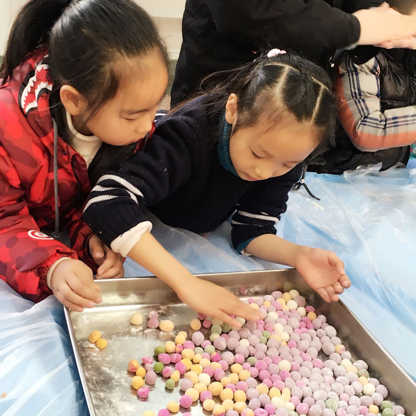 班主任倡议发动,家委会合作准备搓圆子的必需品。
