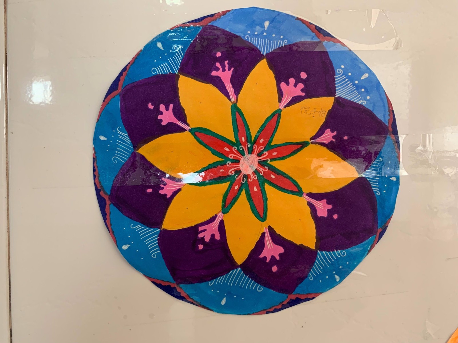 圆,不仅是一种几何图形,更是中国的文化象征。自古以来,“圆”就被赋予了非常美好的含义。亲人团聚叫“团圆”,事情处理得使人满意,就叫“圆满”……本学期五年级就结合数学第六单元《圆》,开展了设计美丽的图案的活动。