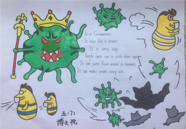 在这样的特殊时期,安小五年级的同学们在关注疫情的基础上,结合绘本和教材内容Unit4 Seeing a doctor,开展了“Be a doctor.”的主题融合活动。同学们当起了小医生,用图文并茂的方式向大家介绍新冠病毒Novel Coronavirus Pneumonia,以及如何有效防控。
